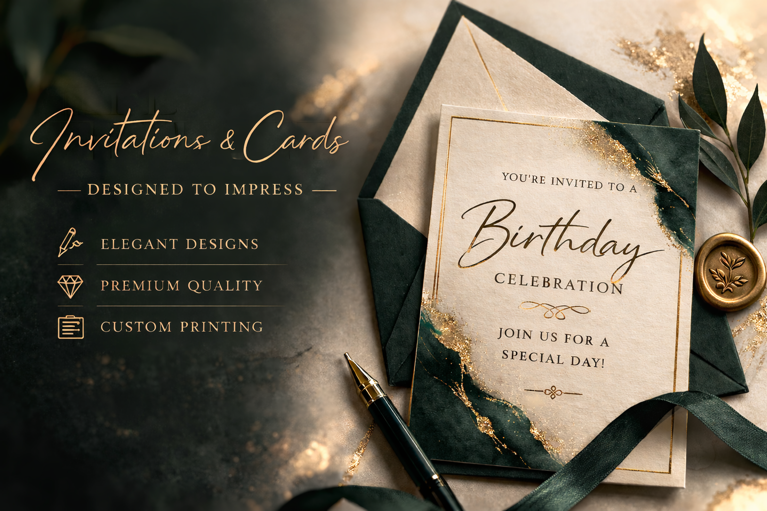 From thank-you cards, bold invitations to unique event stationery, we help you share your message in a way that’s stylish, modern, and unforgettable.